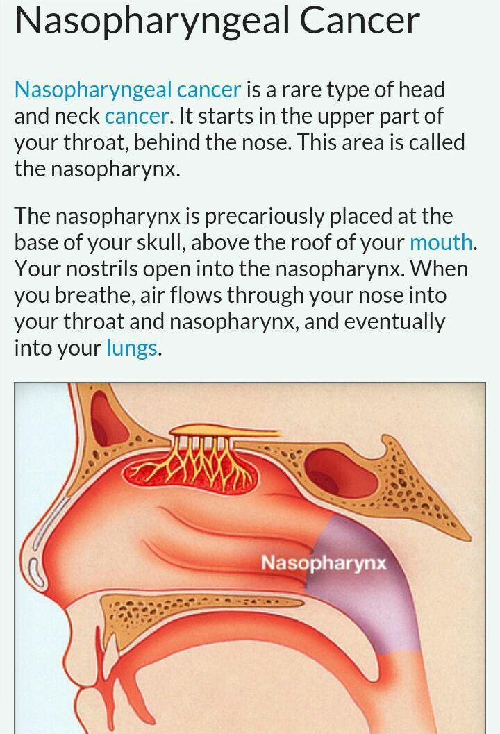 SALAH SATU penyakit yang menggerunkan selain RESDUNG yang berlaku di kawasan antara TENGKUK, HIDUNG dan TELINGA ialah KANSER NASOFARINK (NASOPHARYNX CANCER) NPC. Penyakit ini jarannnggg berlaku tetapi kalau berlaku adalah amat MERBAHAYA kerana ianya amat HAMPIR kepada OTAK, 1 dalam setiap 100000 ikut kajian di Amerika Utara yang menghidapi kanser ini.